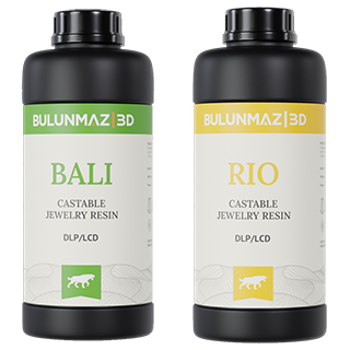 BULUNMAZ 3D RIO and BALI are professional-grade castable resins developed specifically for the needs of modern jewelry production. With high wax content and minimal shrinkage, they deliver flawless burnout performance and ensure sharp, clean results for casting in gold, silver, and other precious metals.
